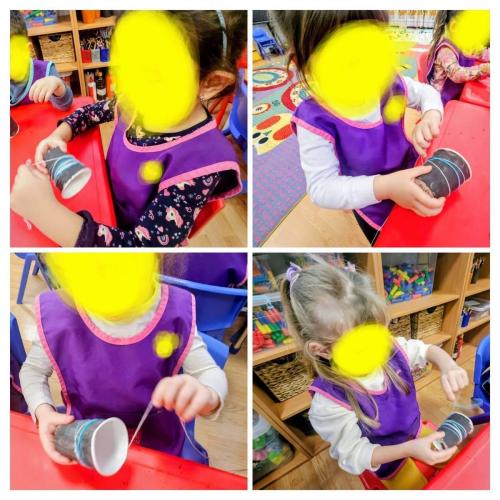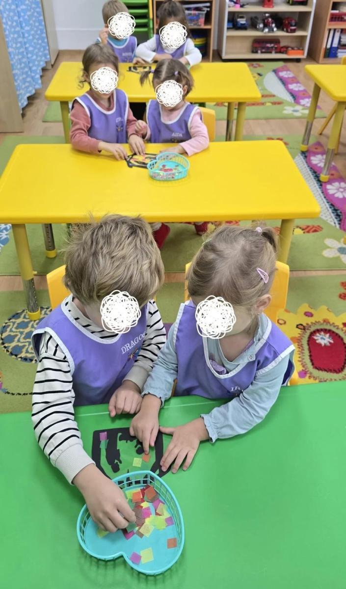 La centrul „Joc de masă”, cei mici au realizat „Chipul meu din piuneze”, exersând atenția, răbdarea și motricitatea fină.